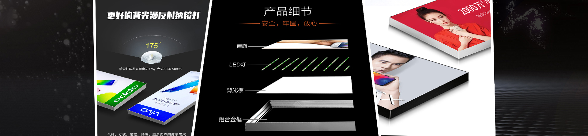 產品特點除了具備超薄節能燈箱的優點外,顯示效果別具一格,亮燈時展現的是……